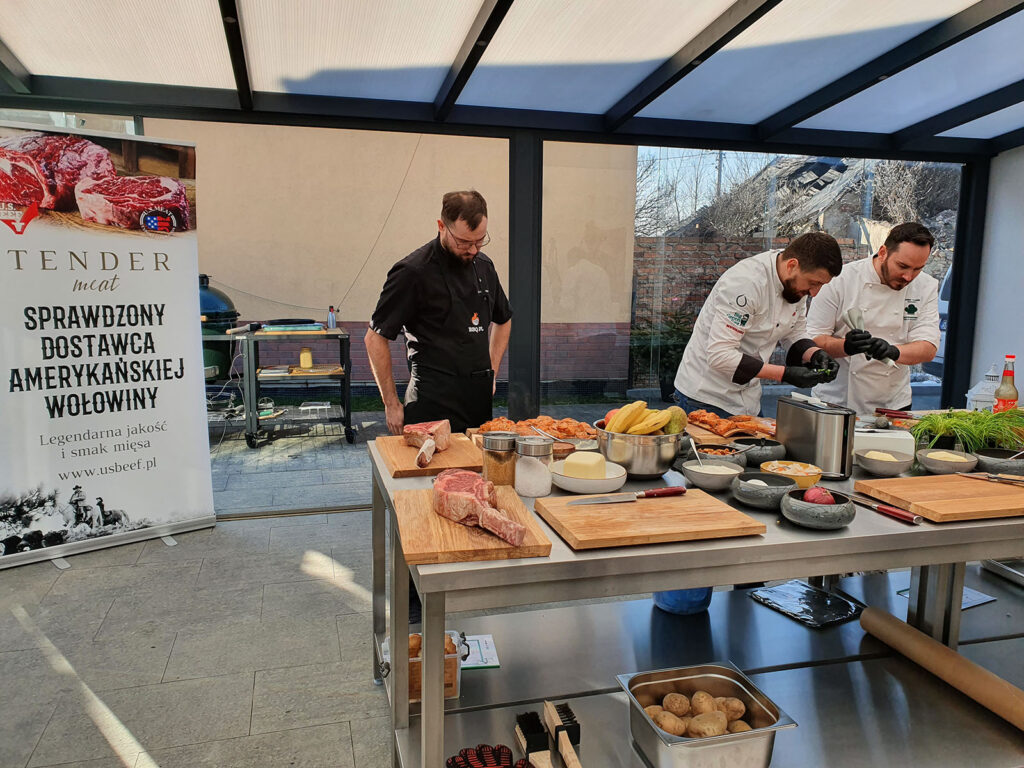 Takiego pokazu kulinarnego jeszcze nie było nad Wisłą 10 lutego w Akademii Grillowania w Piasecznie, odbył się zorganizowany przez nas niezwykły pokaz kulinarny. W rolach głównych wołowina Wagyu oraz Black Angus z USA. Gościem specjalnym i autorem menu był włoski szef kuchni, Davide Bigarella, znany jako Mr Big. Doświadczenie w amerykańskiej wołowinie premium Tender Meat, jako wiodący dystrybutor wołowiny ze Stanów Zjednoczonych w Polsce, od 30 lat dostarcza na rynek mięso premium, zaopatrując zarówno restauracje, jak i sklepy. Nasza firma jako pierwsza w Polsce zaczęła sprowadzać marmurkową, sezonowaną wołowinę z USA już w 2001 roku. Amerykańska wołowina to przede wszystkim gwarancja jakości i powtarzalności każdego kawałka mięsa. Doświadczenie rancherów, którzy od pokoleń pracują nad genetycznym zapleczem swoich stad, używając najlepszych ras mięsnych, takich jak Wagyu,
